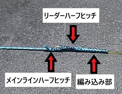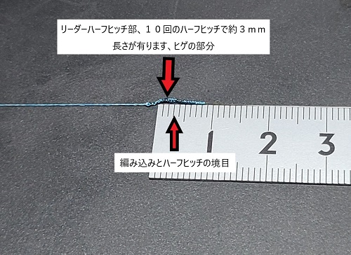 リーダーヒゲ部とメインラインにハーフヒッチを施します。