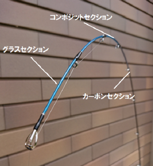 こちらの竿は一見ティップにソリッドを繋いだ様なアクションになってますが
