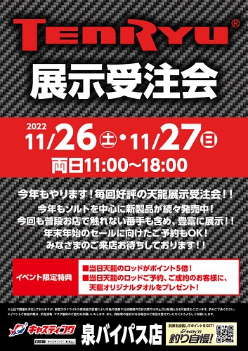 キャスティング泉バイパス店 様にて、『TENRYUロッド展示受注会』を開催致します。