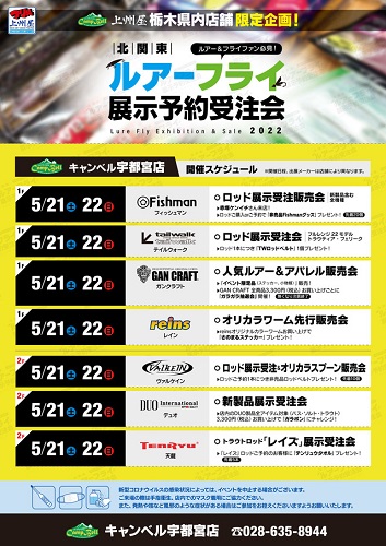 キャンベル宇都宮店 様にて、『ルアーフライ展示予約受注会』を開催致します。