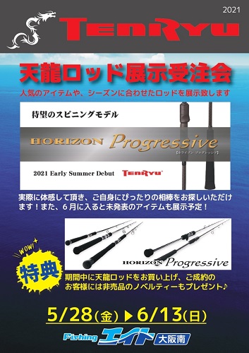 シーズンに合わせた天龍ルアーロッドを展示予定です。