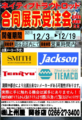 上州屋 岡谷店様にて、トラウトロッド展示受注会を開催致します。