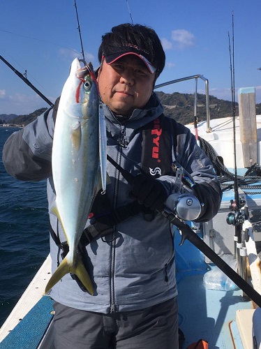 上がってきたのは4キロのハマチ。サイズアップ成功です。