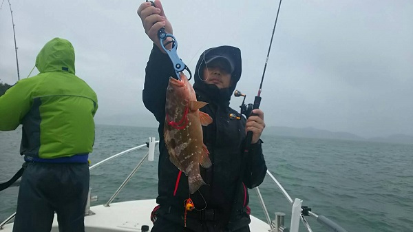 当日は台風の影響で雨・風共に強く風裏を探しながらの釣りとなり、ガマンの釣りとなりました。