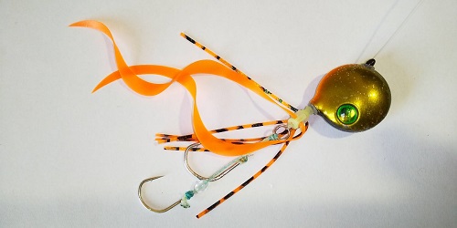 水深が浅いのでTG40gのグレー系ヘッドにオレンジと赤のショートカーリーで