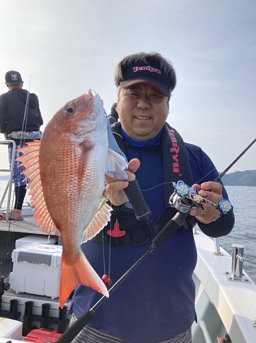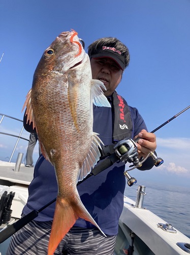 上がってきたのは美味しそうなサイズの真鯛でした。