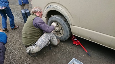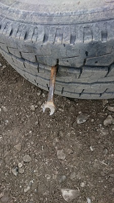 なんと強靭なバン用ラジアルタイヤにスパナが刺さってる!!