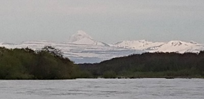 広大な平原を蛇行しながら流れる大河!遠くには雪を蓄えた山脈が聳え立つ!