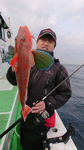 当日は2mのうねりも残っていたが序所に落ち着き後半は釣り易くなった。