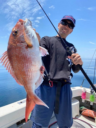 下げ潮が効き始めてようやく潮が流れ始めると途端に鯛の活性が高まりました。