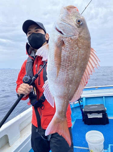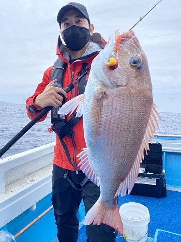 最初の一本目で慎重なファイトをすると、大きく有りませんが綺麗なマダイをキャッチ。