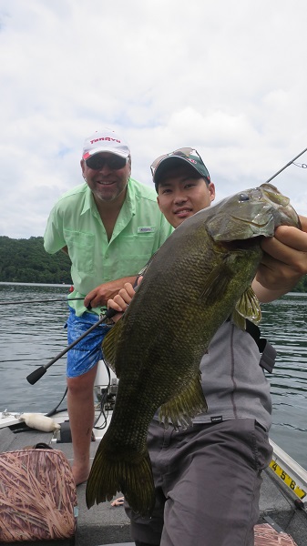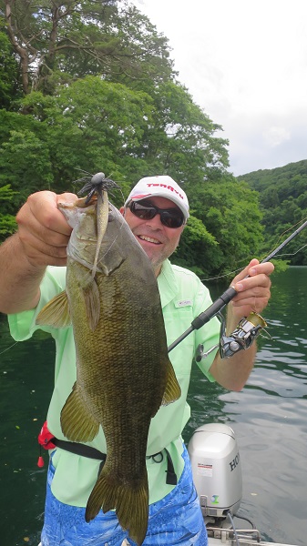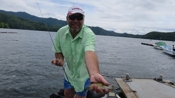 フランスから来た御大は、スモールマウスバスを釣ったことが無いと言う。