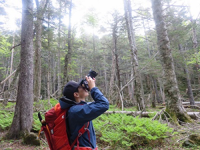 途中、雪渓の残る沢も垣間見れ、冬の間は降雪が多い事が伺える。