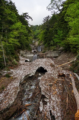 いくつかの堰堤を越え、最後に行き着いた堰堤下の淵は凄かった。