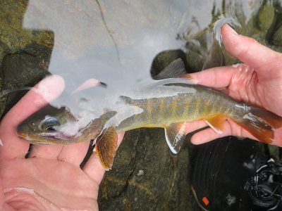 ヤマトイワナの血統を引いている様だが、普段見ている模様とは全然違う。