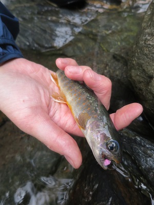 何個目かの淵で、小さいながらも初フィッシュが釣れた。