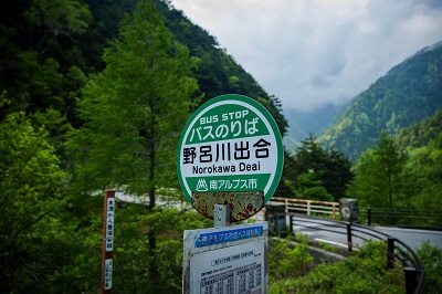 スタート地点のバス停でも随分と山奥に位置しており、