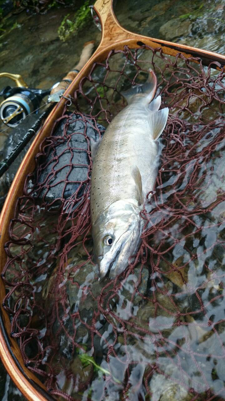 とある里川の大淵で、小型だが飛び出してくれた。