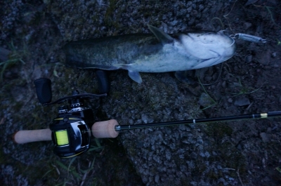 ロッドを立ててカーブフォールするとカワムツ爆釣!