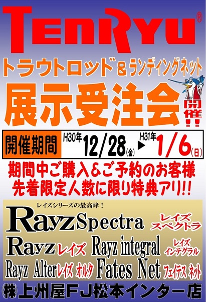 TENRYUのトラウト用品を集めた展示受注会を開催致します。