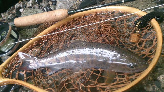 巻き返しの反転流にカディスを送り込むと良型のヤマメもでました。