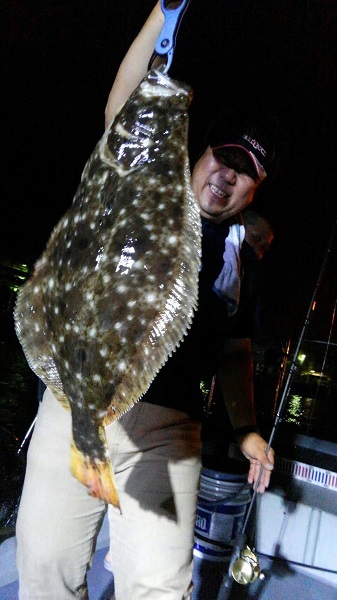 数分のファイトの後、水面に見えたのは立派なヒラメでした。