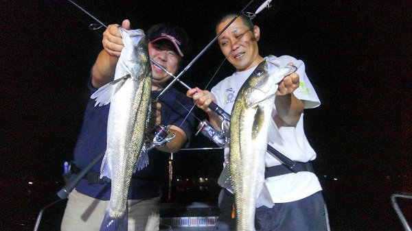 同船のお客さんが次のキャストで約60cmのシーバスをキャッチ。