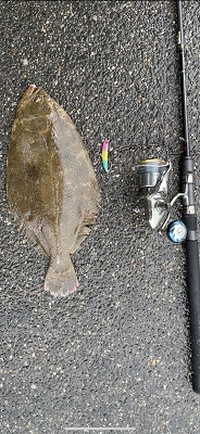 いつもと引きが違うので何かと思ったらヒラメでした!!