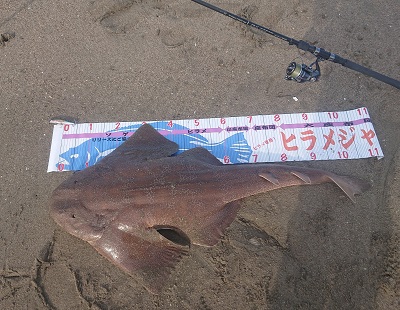 ナイスサイズ、ナイスファイトのカスざめを難なく釣りあげることが出来ました
