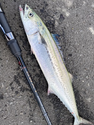 魚を掛けました。重たいスピンテールジグにも負けることなく