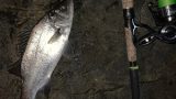 魚を掛けました。重たいスピンテールジグにも負けることなく