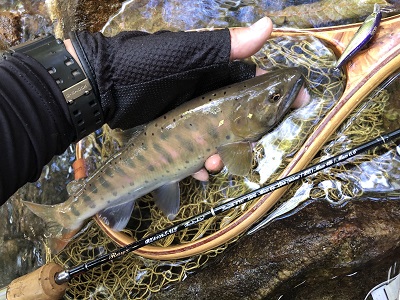 竿を購入したその足で渓流へ。この日に出た尺オーバーの山女。