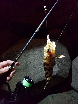 潮が止まったので移動して連れたのがタケノコメバルでした。