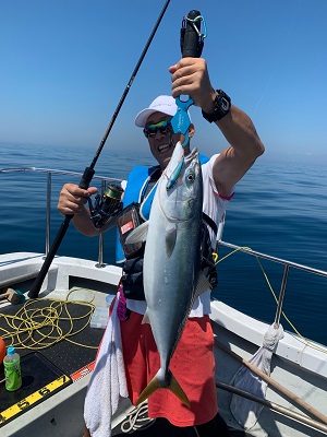 ベイトで操作性抜群でテンヤを潮に流してスライドさせる釣りに最適です。