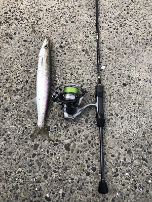 港内でカマスが釣れました。30cmオーバーは初めてで驚きました!