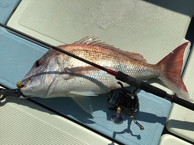 マダイの強い引きと船の流れが相まって重く感じましたが、粘りのあるバットのおかげで安心してやり取りできました。