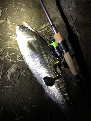 手前のテトラ帯であまりドラグを出したくない状況でもロッドの粘りで魚をいなすことが出来、