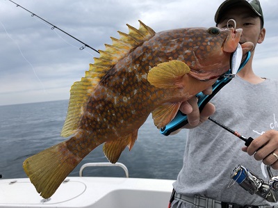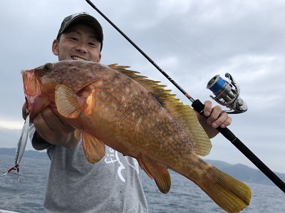 潮が走り出し、重めのジグでしっかり底を取り、狙いどおりキジハタを獲ることができました!