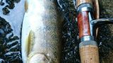 すると、見たこともないような美しい橙色模様のアマゴ(イワナとのハイブリッド?)が現れた。