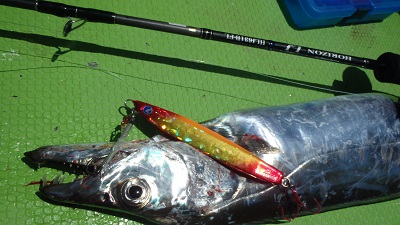 朝一の活性も下がり中だるみなのか、突然食ってきたメーターオーバー・サイズのタチウオ。