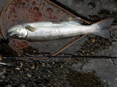 この時期水が出ると本流から大きく育ったアマゴが差してきます。
