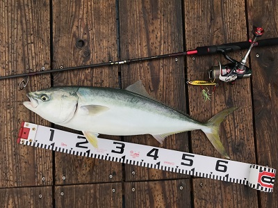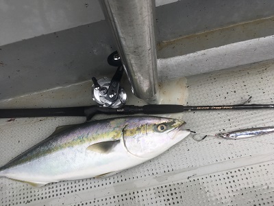 急流域で力強く走るハマチを楽々とリフトしてくれる力強いロッドです。