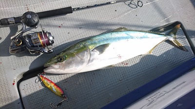 昼になって待望のヒット。軽いワンピッチジャークで底から10mあたりでした。