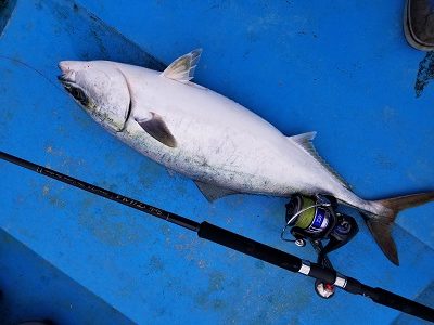 狙いのヒラマサは出ませんでしたが、ブリの9.4キロが食い付いてくれました。