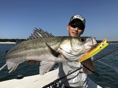 ボイルに届く飛距離と20-40g前後のプラグを振り抜けるパワーは今回かなり有利に思いました。