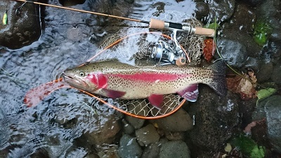 上げてみるとヤマメではなくまさかの虹鱒でした!