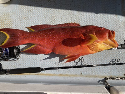 ヒラマサ狙いでジギングの最中、ジグを着底させ、