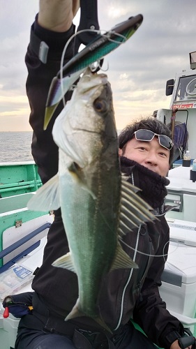 出船前に船長に状況を聞き、まずはサワラ狙いに!