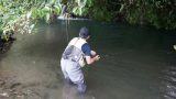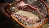数分ファイトした後、穴から引き出して一気に釣り上げました。