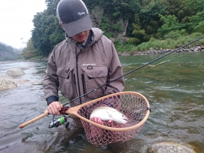 今回は本流初挑戦にして尺アマゴをキャッチしたらしい。